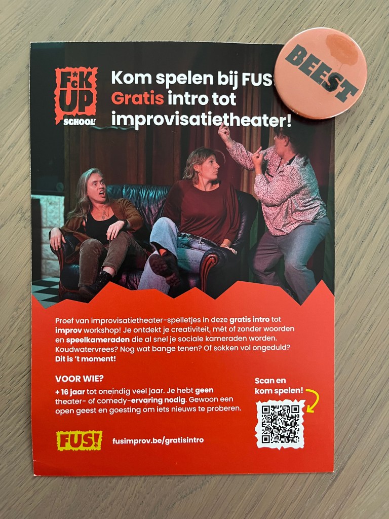 De workshop improvisatietheater was een bevrijdende en verbindende ervaring. Ik voelde me licht, speels en tegelijk geraakt. Het deed me beseffen hoe zelden we in het dagelijks leven écht vrij durven zijn, hoe vaak we reageren met een filter. Deze vorm van spel haalt die lagen weg en laat iets echts over.